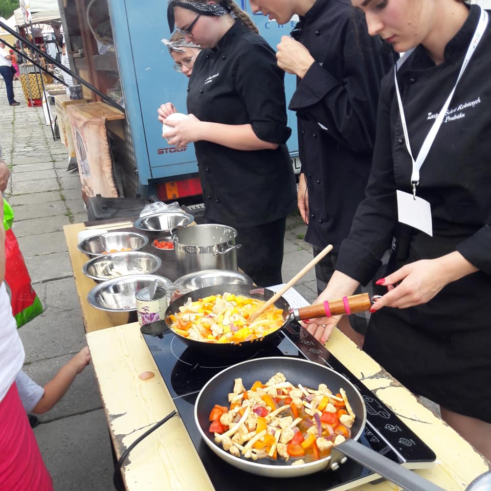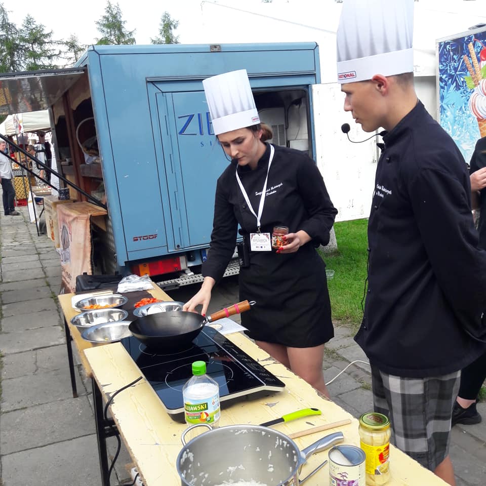 7 czerwca 2019 uczniowie z klas gastronomicznych: Bernadka Mielnik, Wiktoria Golińska, Oliwia Jakieła i Kuba Gajek dali wielkie show, czyli pokaz kulinarny na Targach Rzemiosła. Na oczach publiczności przygotowywali szybkie, smaczne i pełne aromatów danie z kuchni tajskiej. Był to kurczak curry z mango i pędami bambusa serwowany z ryżem jaśminowym. Widzowie mogli dzięki komentarzom Kuby i Bernadki dowiedzieć się jak przygotować takie cudo. W przygotowanie pokazu zaangażował się też sztab nauczycieli (p. Dorota Gąsior, p. Joanna Grzegocka, p. Jacek Pachołek) pod wodzą Pana Dyrektora.