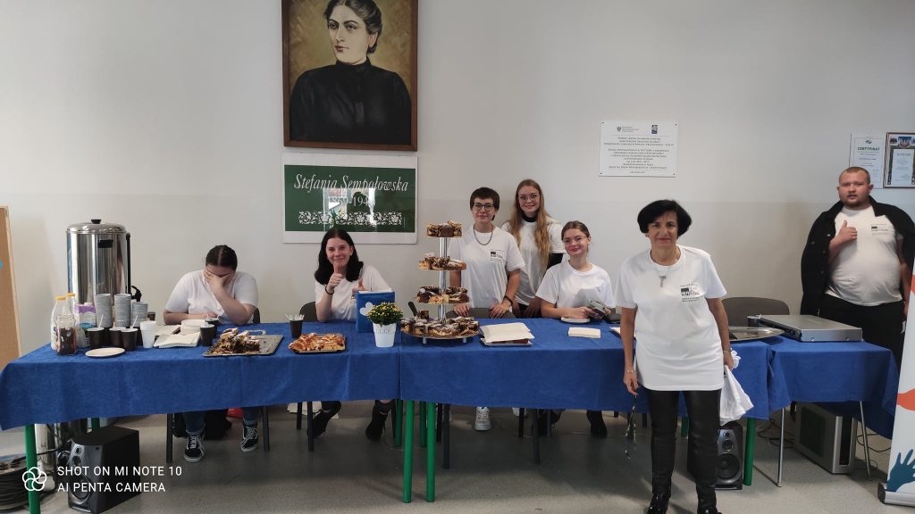 W ramach Obchodów Urodzin Patronki w poniedziałek 04.10.21r. wolontariusze „Powiatowego Klubu Ośmiu” uruchomili kawiarenkę „Na TAK” – II LO pod portretem jubilatki. Pojawiły się sprzedaży pyszne domowe ciasta, kawa i herbata . W trakcie przerw muzyka umilała Nam czas. Gorąco dziękujemy za liczne wsparcie naszej akcji.