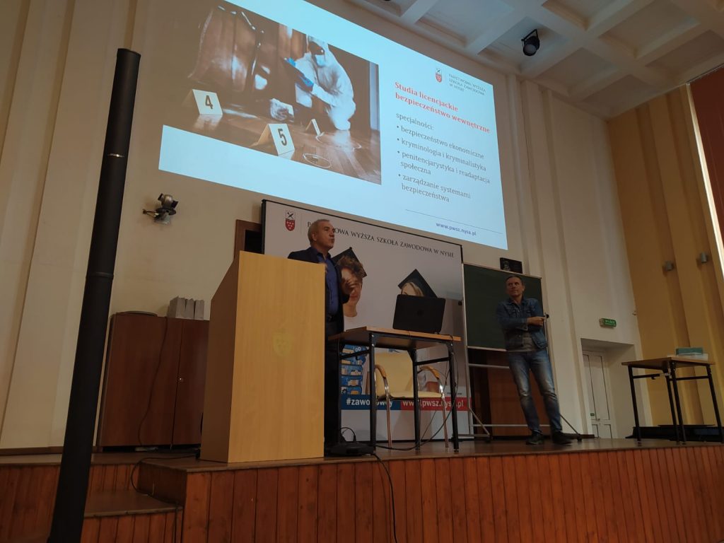20 października uczniowie klas 3A,3B i 2B pod opieką pań Marzanny Zawadzkiej-Ciępki, Malwiny Bednarczyk i Katarzyny Bochenek uczestniczyli w wycieczce dydaktycznej do Nysy. W Zakładzie Karnym w Nysie mjr Arkadiusz Komar i mjr Artur Pikuła zapoznali naszych uczniów ze specyfiką pracy w zakładzie karnym. Natomiast w Państwowej Szkole Zawodowej w Nysie płk Mirosław Rasławski przedstawił ciekawą ofertę uczelni przedstawiając między innymi nowatorski kierunek studiów: penitencjarystyka. Jest to kolejny tego typu wyjazd mający na celu wskazanie możliwości dalszej ścieżki kariery zawodowej absolwenta naszej szkoły po skończeniu liceum. W planach są stałe wyjazdy do PWSZ w Nysie na zajęcia w ramach współpracy naszej placówki uczelnią w Nysie.