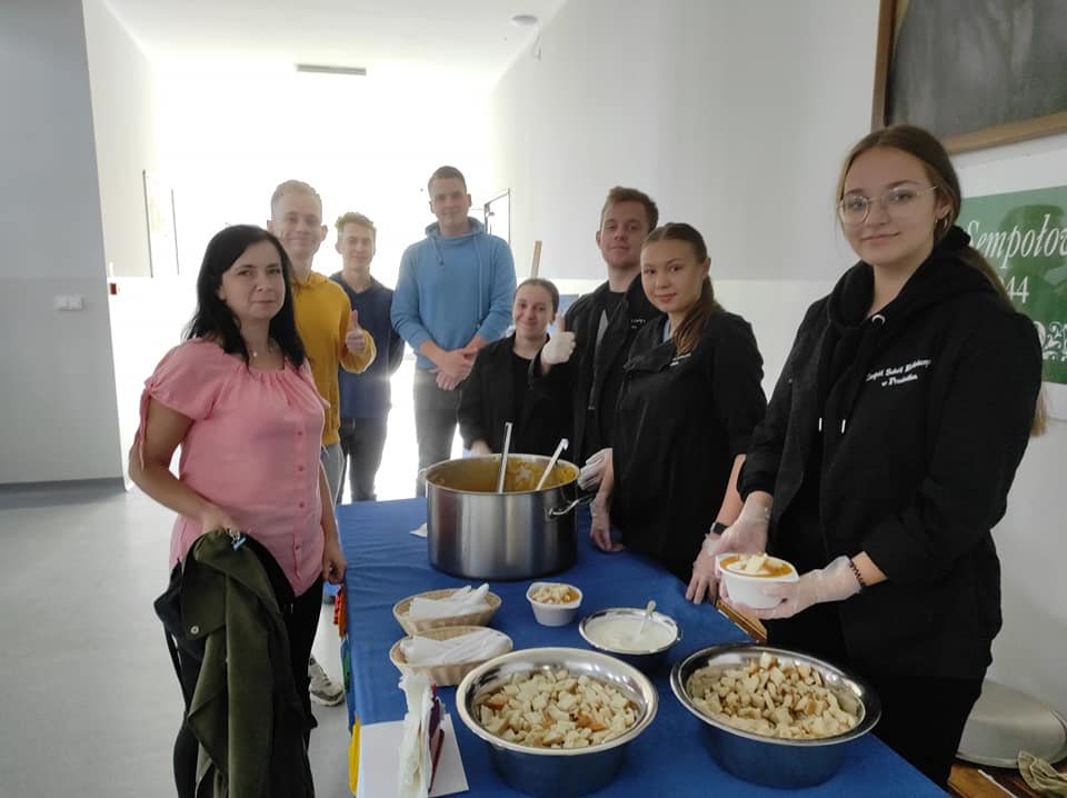 We wtorkowych potyczkach kulinarnych uczniowie „Rolnika” sprawdzali sowie umiejętności w ubijaniu piany z białek na czas, obieraniu jabłka, tak by skórka była jak najdłuższa oraz i swoją wiedzę z zakresu gastronomii. . Było przy tym dużo śmiechu i zabawy. Dla miłośników ostrych smaków w środę przyrządzono zupę krem z dyni.