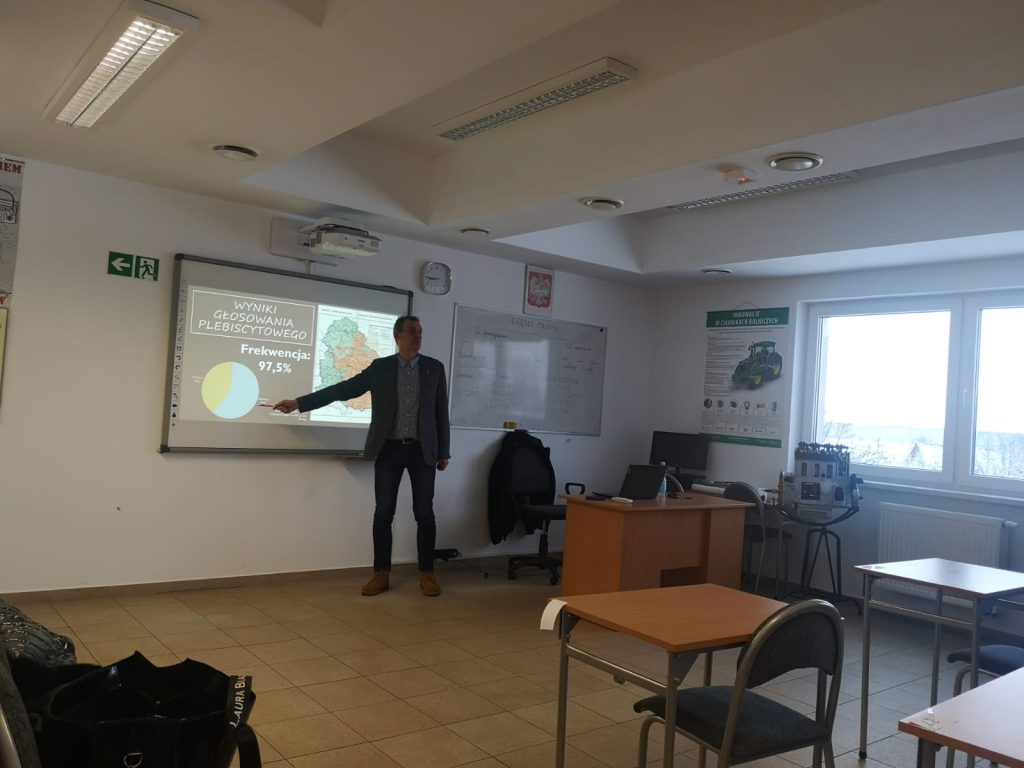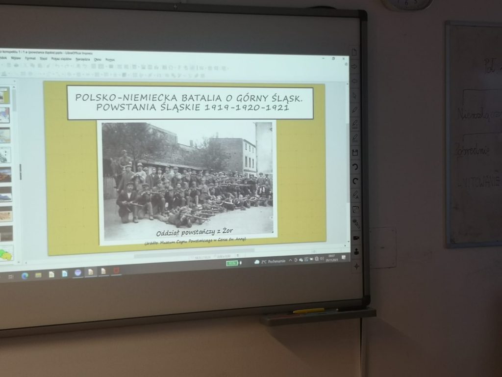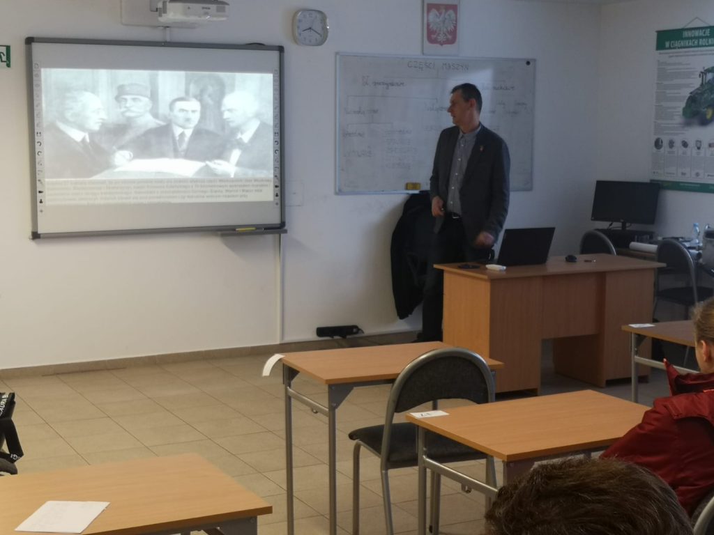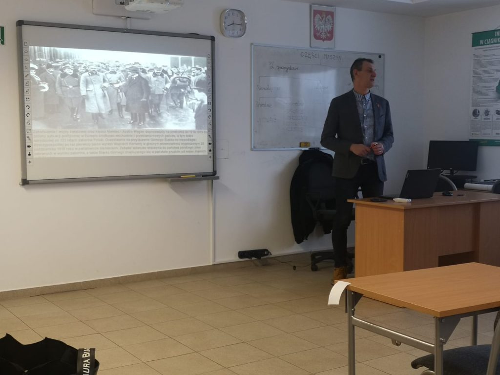 Prelekcje przeprowadził pracownik Muzeum Czynu Powstańczego z Góry św. Anny Pan Dragomir Rudy. W zajęciach, które były elementem projektu:” Ślązacy dla Niepodległej ” realizowanego przez Instytut Śląski w Opolu wzięli udział uczniowie klas I, II i III ZSR.