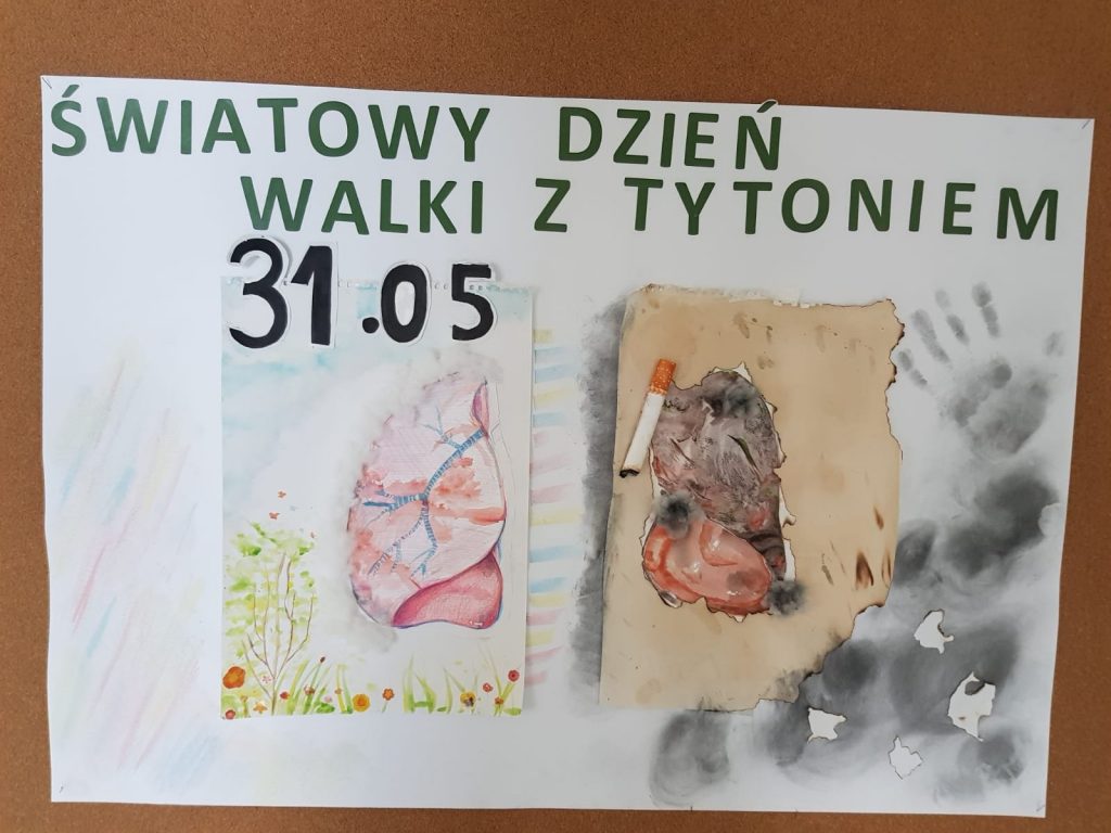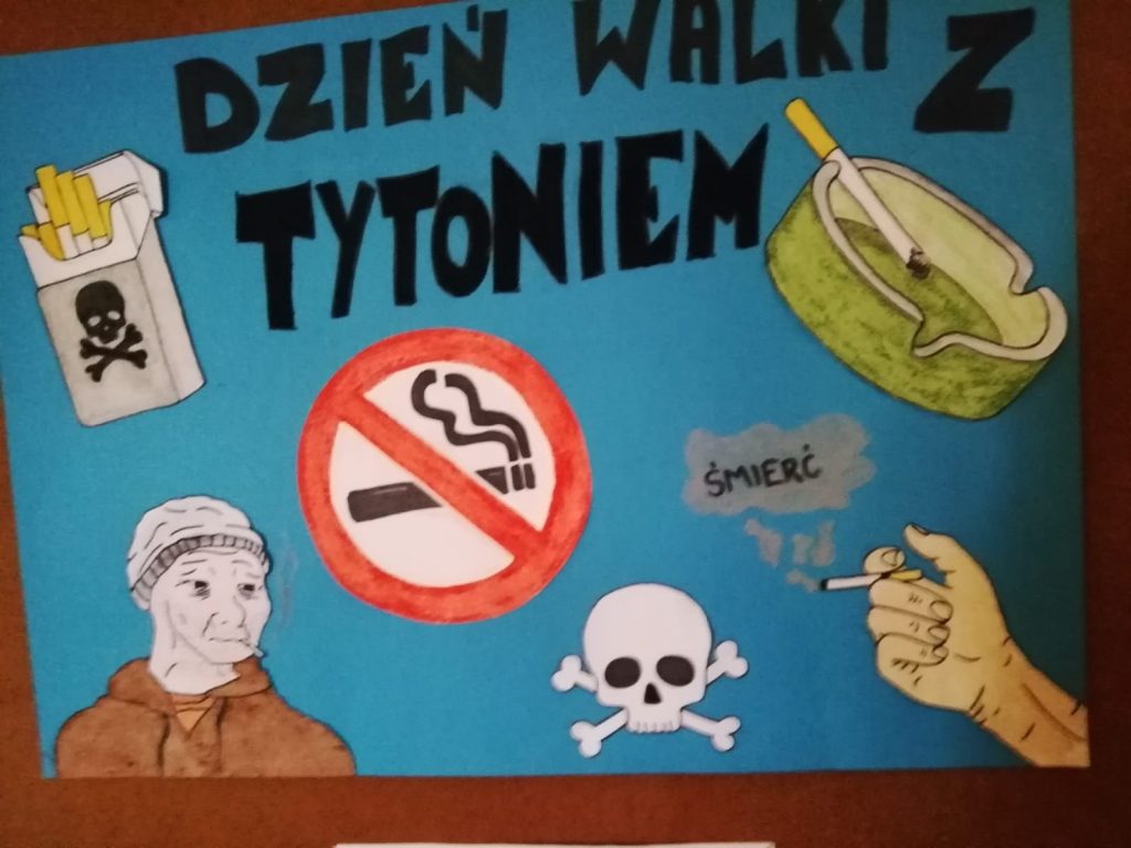 Inicjatorem akcji walki z tytoniem jest „Powiatowy Klub Ośmiu”. Członkowie Klubu wywiesili hasła na drzwiach każdej klasy a plakaty wykonali wolontariusze: Nadia Piskoń, Paweł Żegleń, Dominik Ziembla.