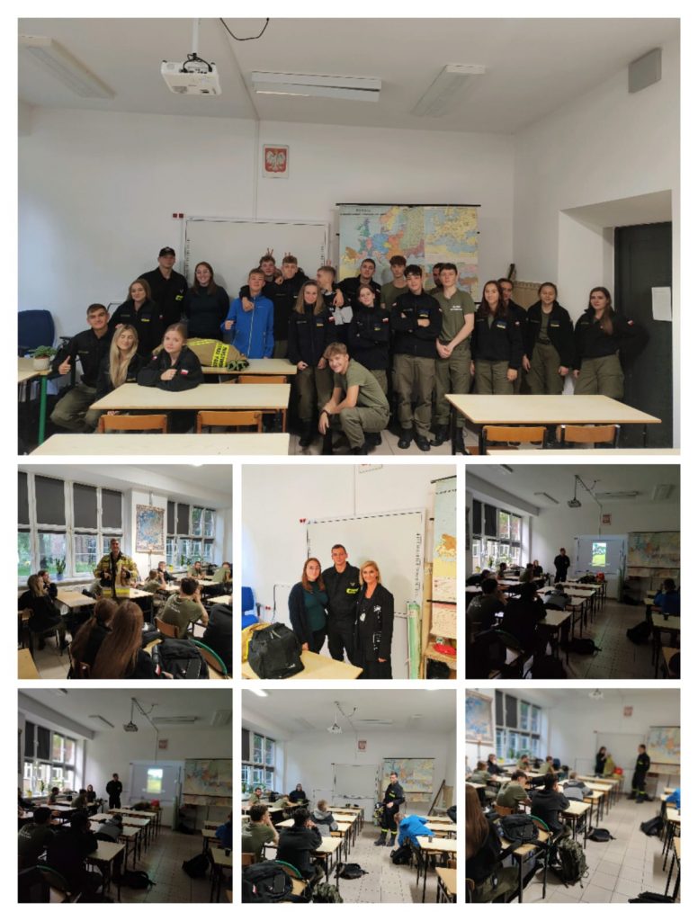 W ubiegłym tygodniu na zajęciach z wychowawcą w kl. 2A OPW gościli absolwenci klas mundurowych młodszy aspirant dziennego studium Centralnej Szkoły Państwowej Straży Pożarnej w Częstochowie Jakub Karmelita ,obecnie pracownik Jednostki Ratowniczo Gaśniczej w Głuchołazach i Agnieszka Jędrzejak, była studentka WSZ o kierunku Bezpieczeństwo Wewnętrzne w Nysie.