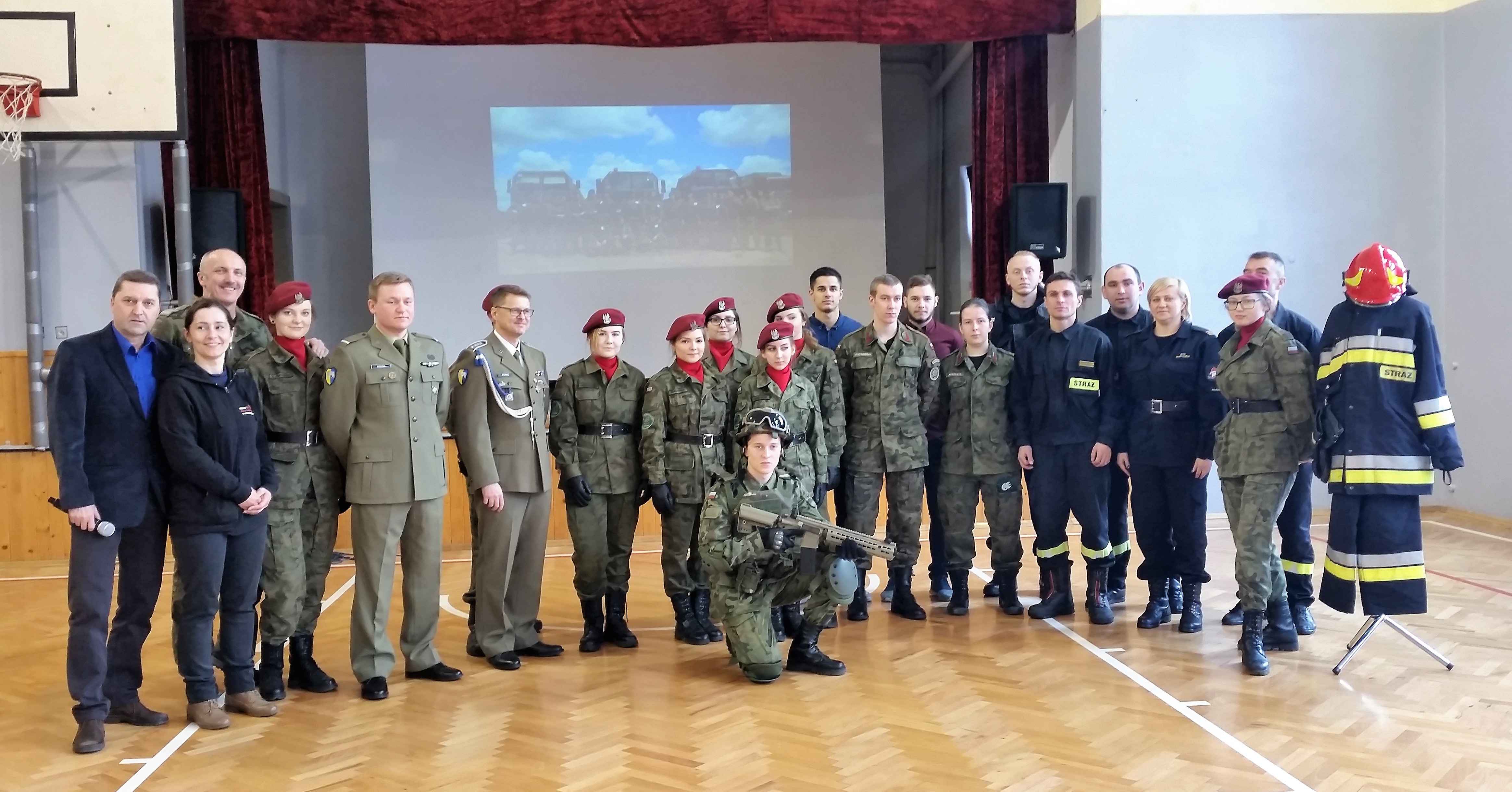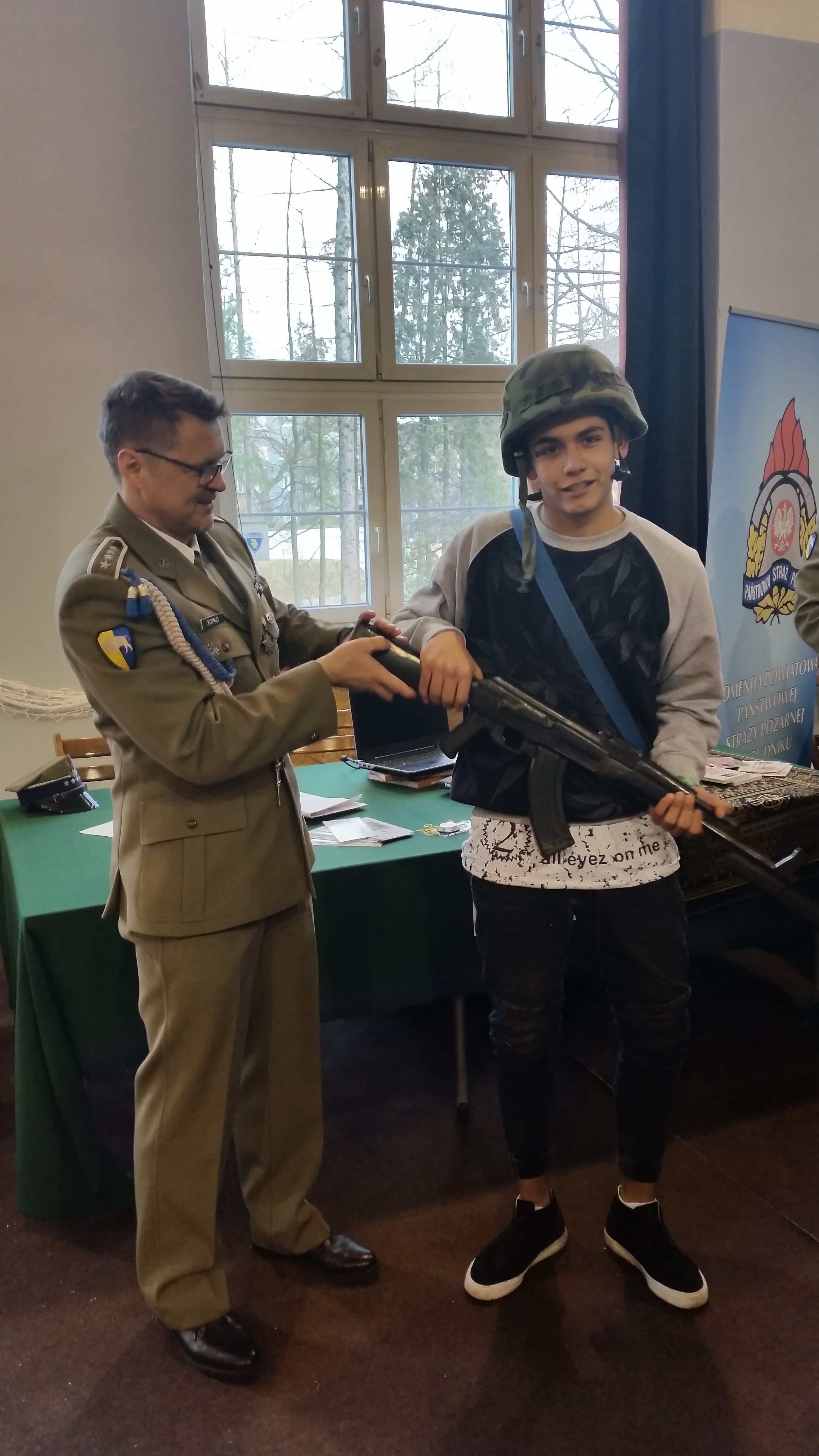 21 marca od wielu lat w naszej szkole to nie „dzień wagarowicza”, ale dzień pełen wysiłku i dodatkowej pracy aktywnych uczniów, którzy angażują się w promocję szkoły. Uczniowie ci są żywą reklamą naszej placówki pokazując to, co u nas najlepsze. Gimnazjaliści wraz ze swymi nauczycielami stawili się licznie. Przystawiając ucho „tam i siam” w Prudniku, dowiadujemy się, że SIĘ PODOBAŁO! Widać, że w tej szkole coś się dzieje, a przyjazna atmosfera promieniuje daleko poza granice naszego miasteczka. Na sali gimnastycznej II LO pięknie zaprezentowały się klasy licealne wspomagane przez służby mundurowe miasta i 10 Brygadę Logistyczną z Opola. Były pokazy walk, musztry i popisy strzeleckie. Trzeba też koniecznie powiedzieć o nowej klasie, która, mamy nadzieję, powstanie, czyli o „resocjalizacji z elementami bezpieczeństwa wewnętrznego”. Promowała ją pani Marzanna Zawadzka – Ciępka oraz pracownicy i studenci WSZ z Nysy (w tym nasi dwaj absolwenci – Damian i Marceli).