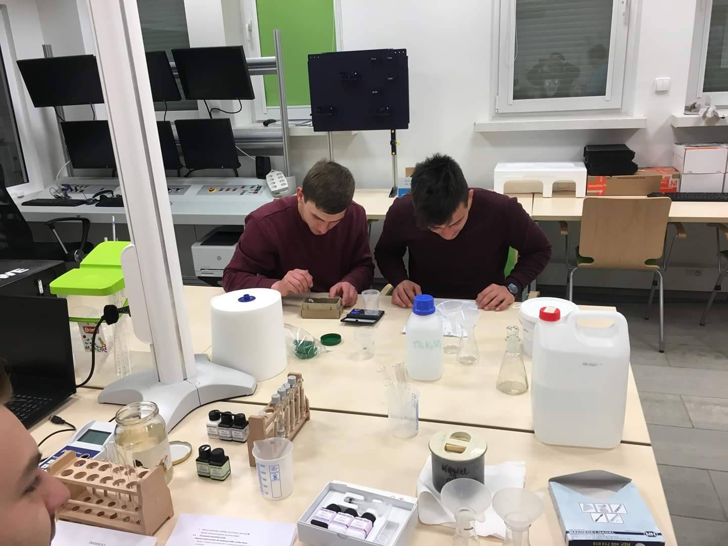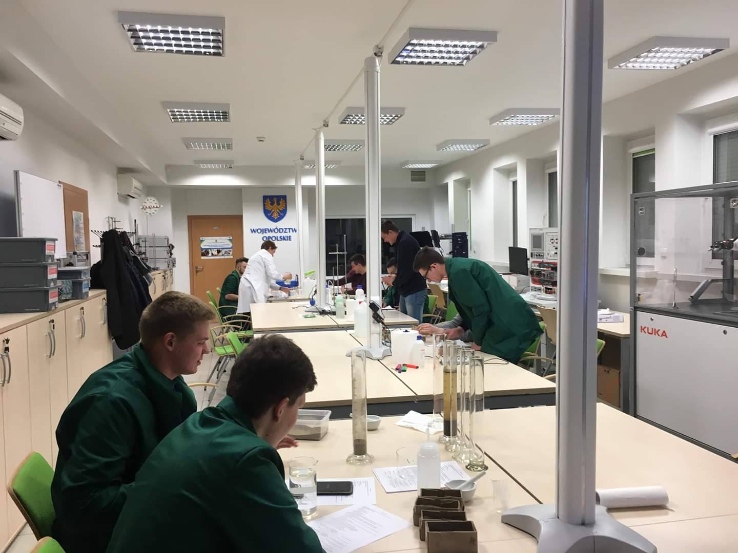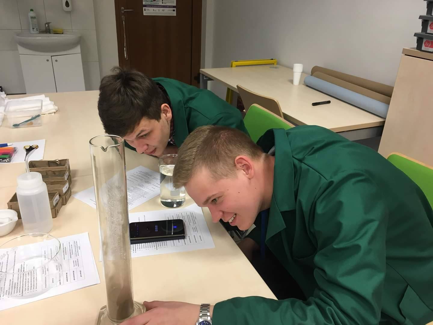 Dzięki uprzejmości OCRE w Opolu rolnicy z III TR mieli niepowtarzalną możliwość uczestnictwa w warsztatach w laboratorium, poświęconych szczegółowej analizie gleby. Badali jej uziarnienie, kwasowość, zasolenie oraz zawartość azotu w próbkach różnej gleby. Warsztaty prowadziła kierownik Opolskiej Okręgowej Stacji Chemiczno-Rolnej. Sądząc po zaangażowaniu w doświadczenia, warto było uczestniczyć w tak ciekawych zajęciach.