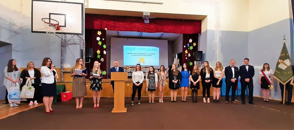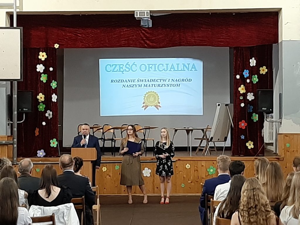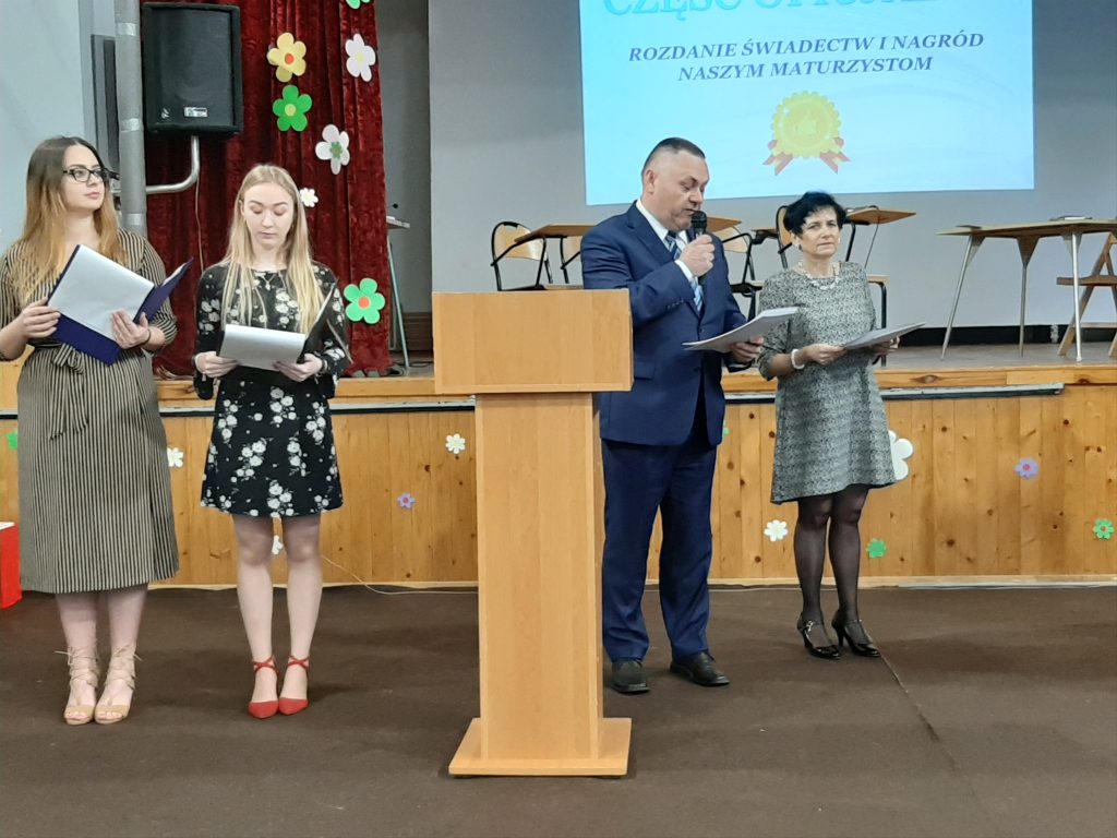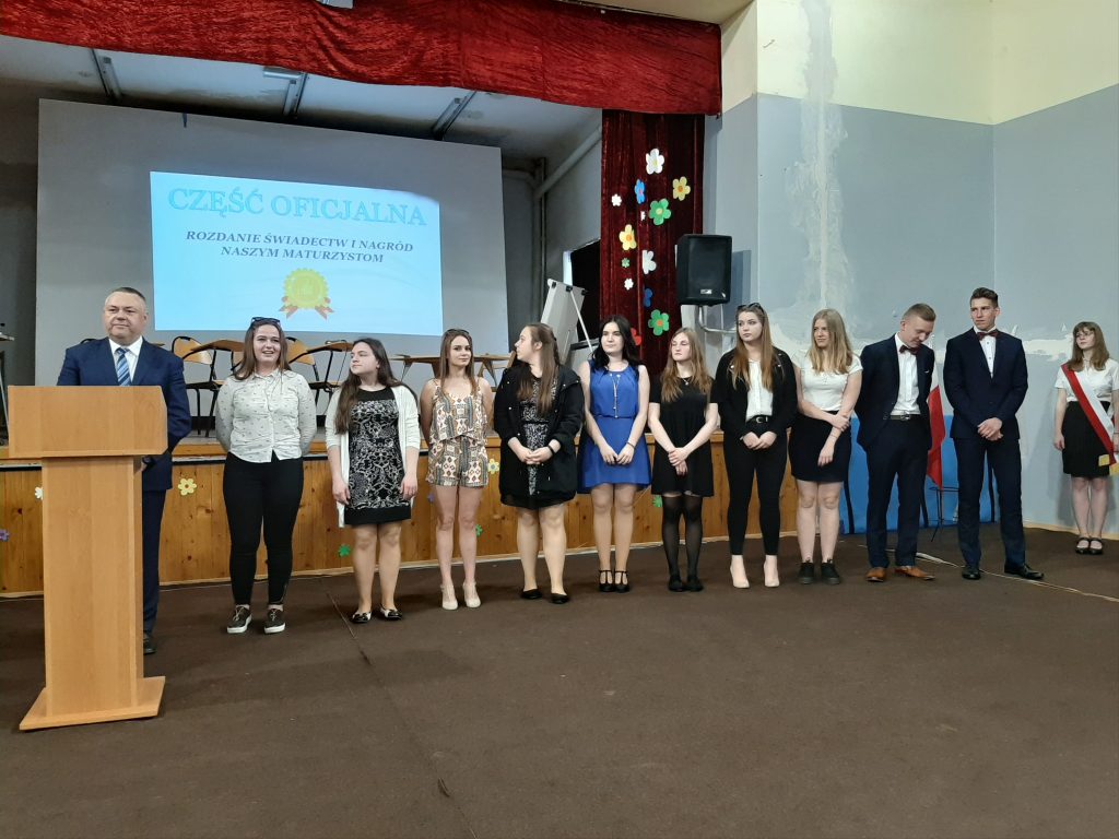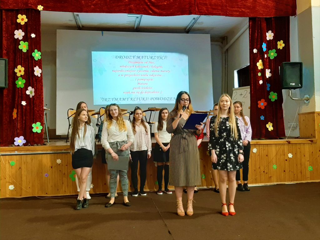 W dniu 26 kwietnia 2019r. odbyło się pożegnanie roku dla absolwentów klas IV Technikum i klasy III LO. Uroczystość przygotowała klasa III TEG pod kierunkiem Pani Julii Sinkowskiej. W części oficjalnej zabrał głos Pan Dyrektor, Andrzej Chruściel, który zaprosił wychowawców klas do wręczenia nagród tym uczniom, którzy wyróżniali się swoją postawą: ocenami, zaangażowaniem społecznym czy frekwencją.