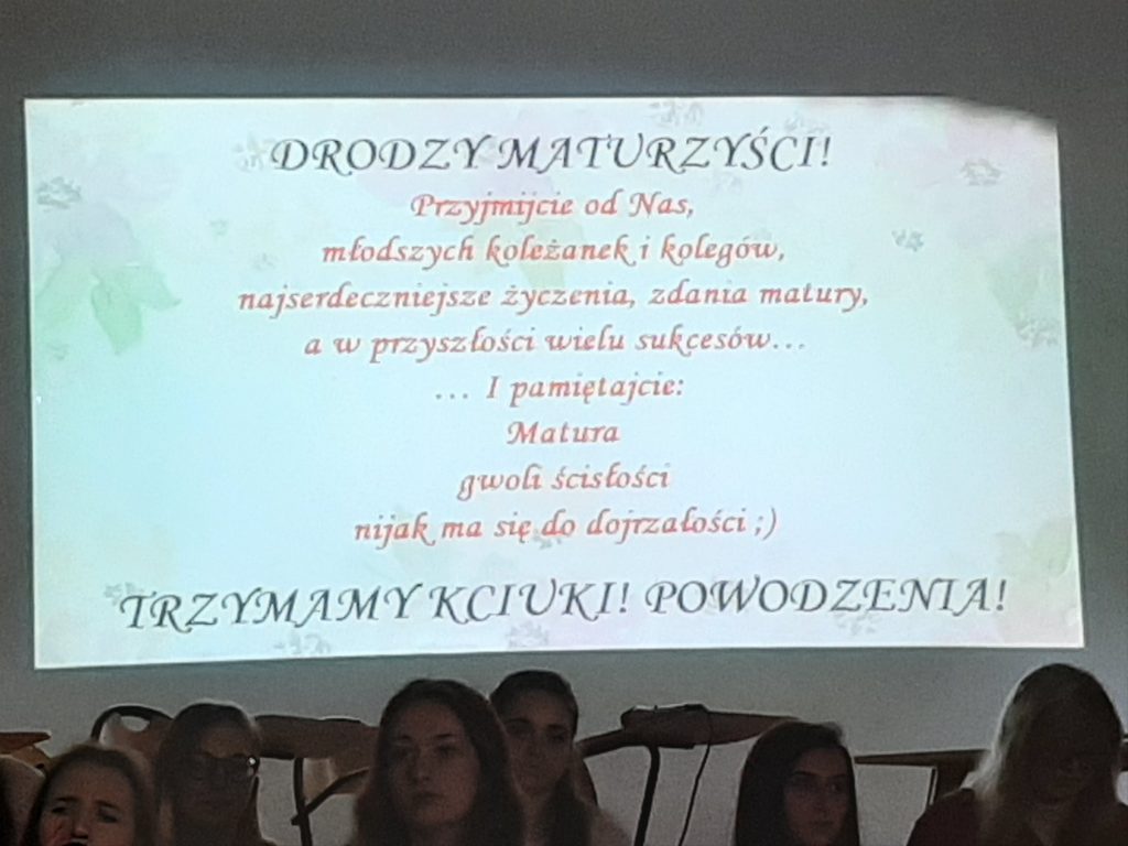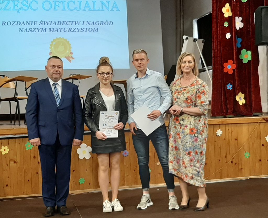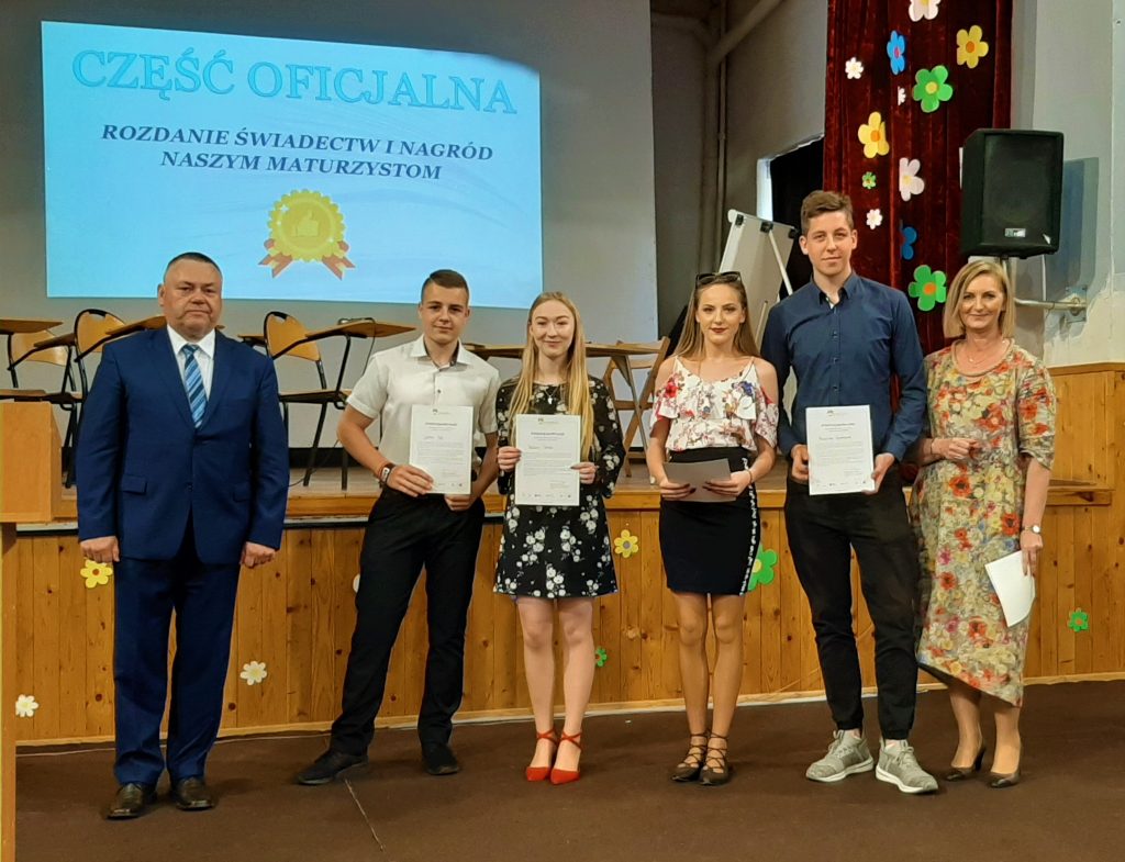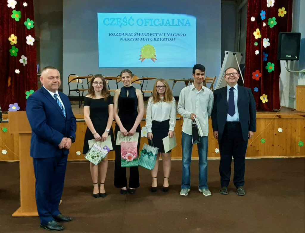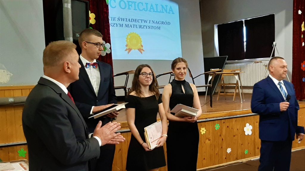 W dniu 26 kwietnia 2019r. odbyło się pożegnanie roku dla absolwentów klas IV Technikum i klasy III LO. Uroczystość przygotowała klasa III TEG pod kierunkiem Pani Julii Sinkowskiej. W części oficjalnej zabrał głos Pan Dyrektor, Andrzej Chruściel, który zaprosił wychowawców klas do wręczenia nagród tym uczniom, którzy wyróżniali się swoją postawą: ocenami, zaangażowaniem społecznym czy frekwencją.